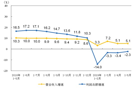 1—5月份,采礦業實現利潤總額2311.2億元,同比增長4.7%;制造業實現利潤總額19519.4億元,下降4.1%;電力、熱力、燃氣及水生產和供應業實現利潤總額1959.6億元,增長9.6%。