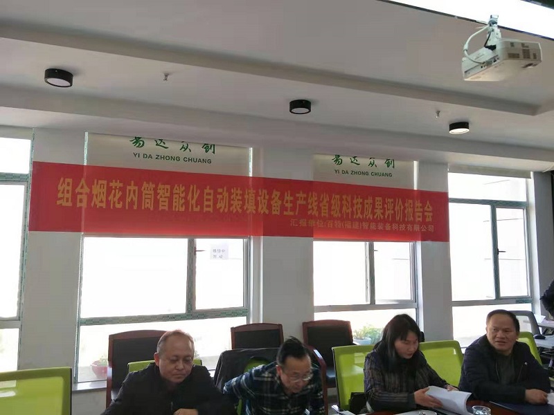 2019年12月13日在瀏陽市召開了由百特(福建)智能裝備科技有限公司完成的“YBJ-ⅠZ-BTZYJ-01組合煙花內筒裝藥自動化生產成套設備關鍵技術研發及應用”項目科技成果評價會。會議邀請到政府機關、行業相關研究院的7位專家對該項目進行了科技成果評價。